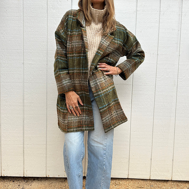Olive Check Wool Coat