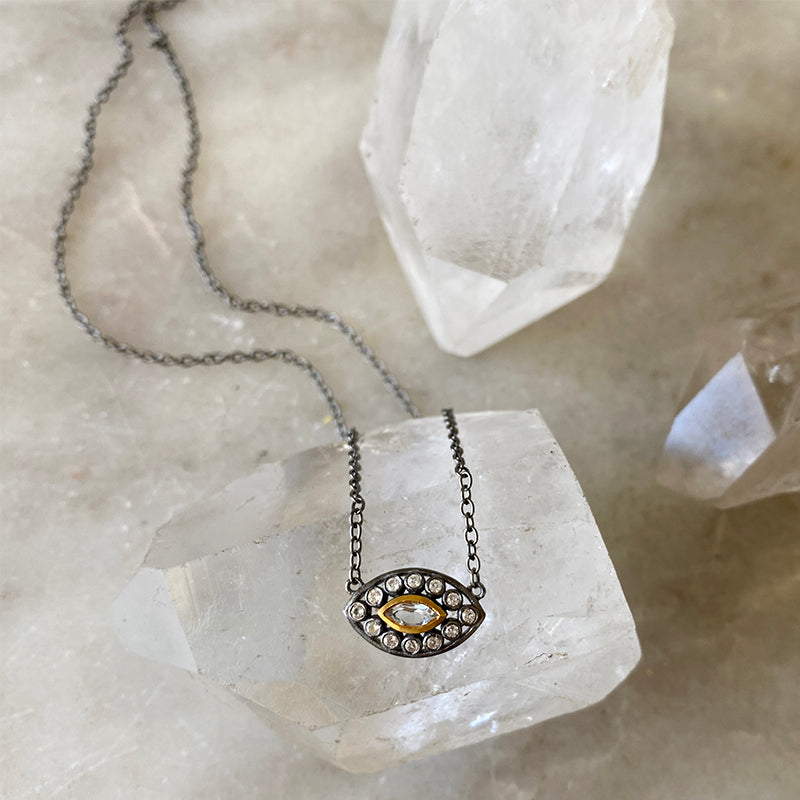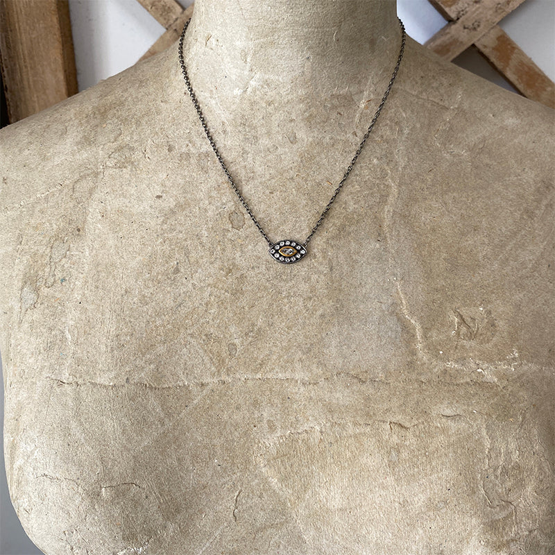 The dark color of oxidized sterling silver is a special treatment that is achieved by careful processing at our design studio. With time and with wear, the color of the oxidized metal may lighten a bit--this is a natural and organic occurrence. Please do not clean oxidized sterling silver jewelry. Attempting to clean oxidized sterling silver jewelry will remove the finish.