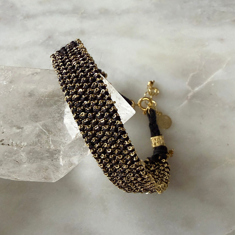 Dag Gioielli Delicate Woven Silk and Chain Bracelet