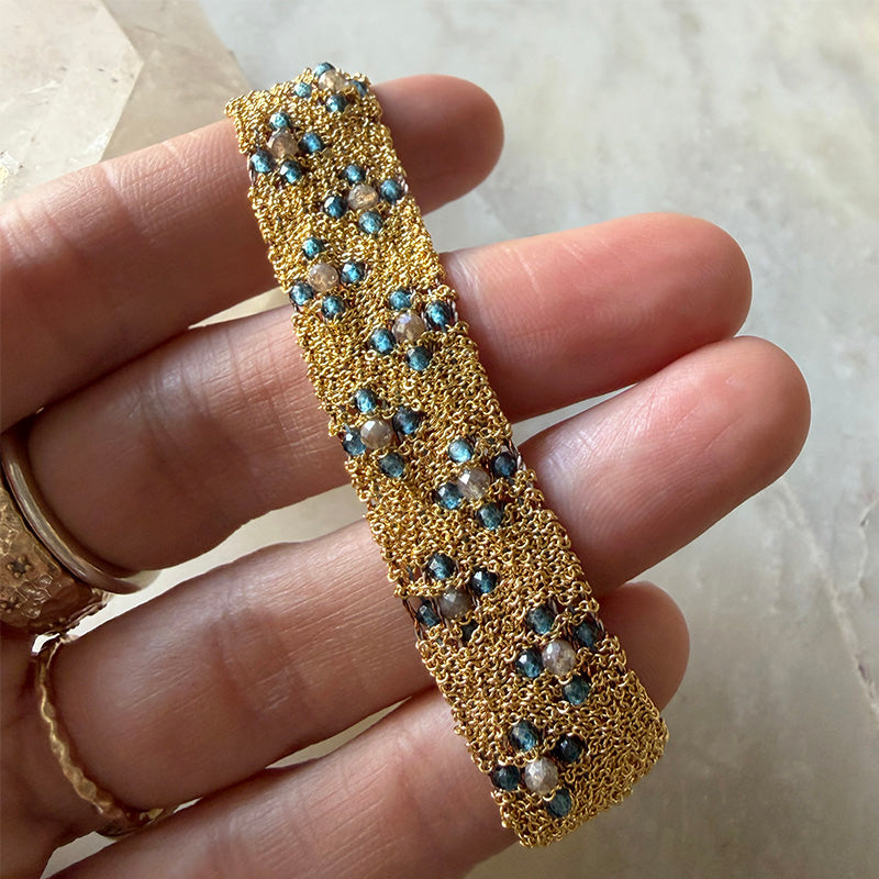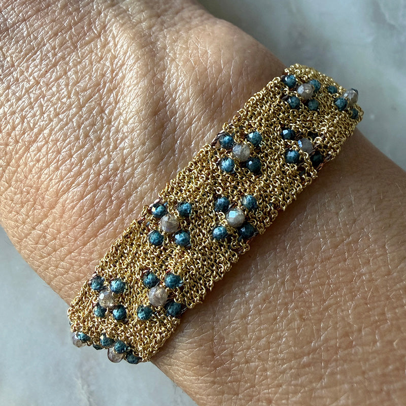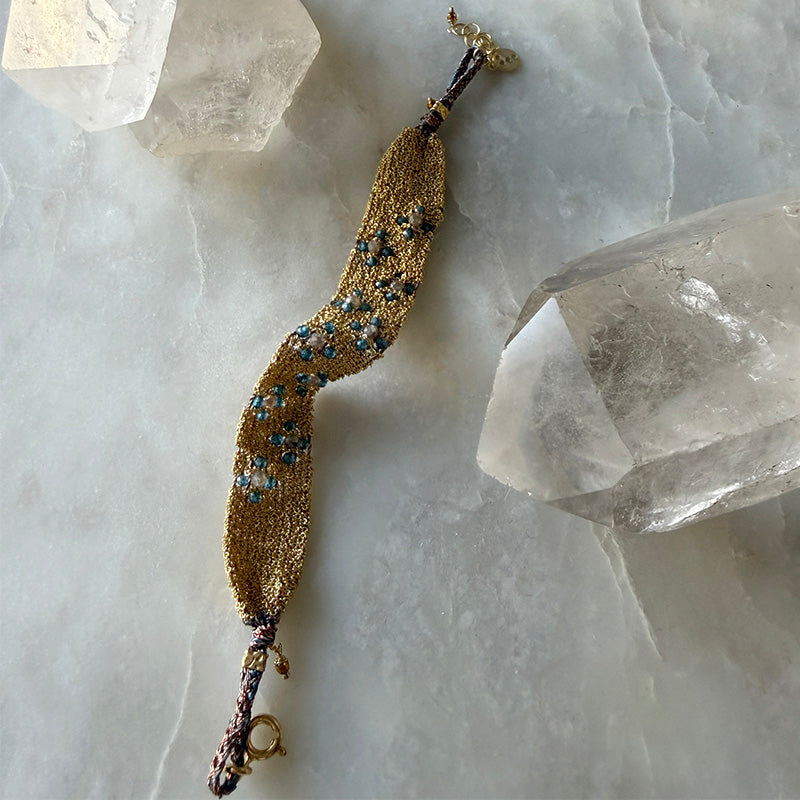 Dag Gioielli creates Italian jewelry woven by hand at their Milan atelier, where artisans blend fine textiles with silver, gold, and semiprecious stones.
