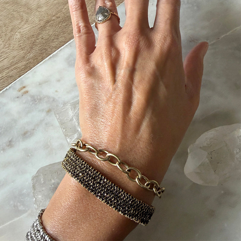The dark color of oxidized sterling silver is a special treatment that is achieved by careful processing at our design studio. With time and with wear, the color of the oxidized metal may lighten a bit--this is a natural and organic occurrence. Please do not clean oxidized sterling silver jewelry. Attempting to clean oxidized sterling silver jewelry will remove the finish.