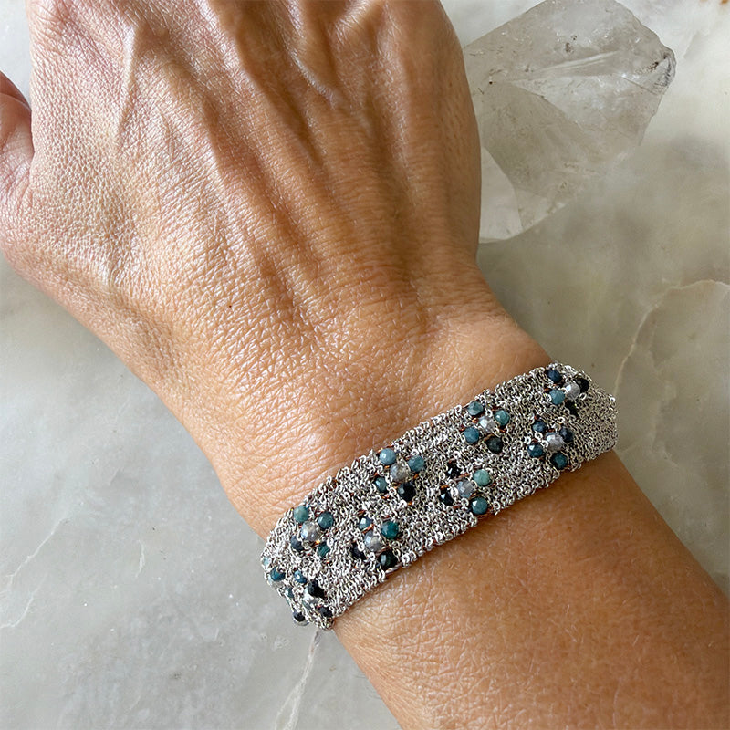 The dark color of oxidized sterling silver is a special treatment that is achieved by careful processing at our design studio. With time and with wear, the color of the oxidized metal may lighten a bit--this is a natural and organic occurrence. Please do not clean oxidized sterling silver jewelry. Attempting to clean oxidized sterling silver jewelry will remove the finish.