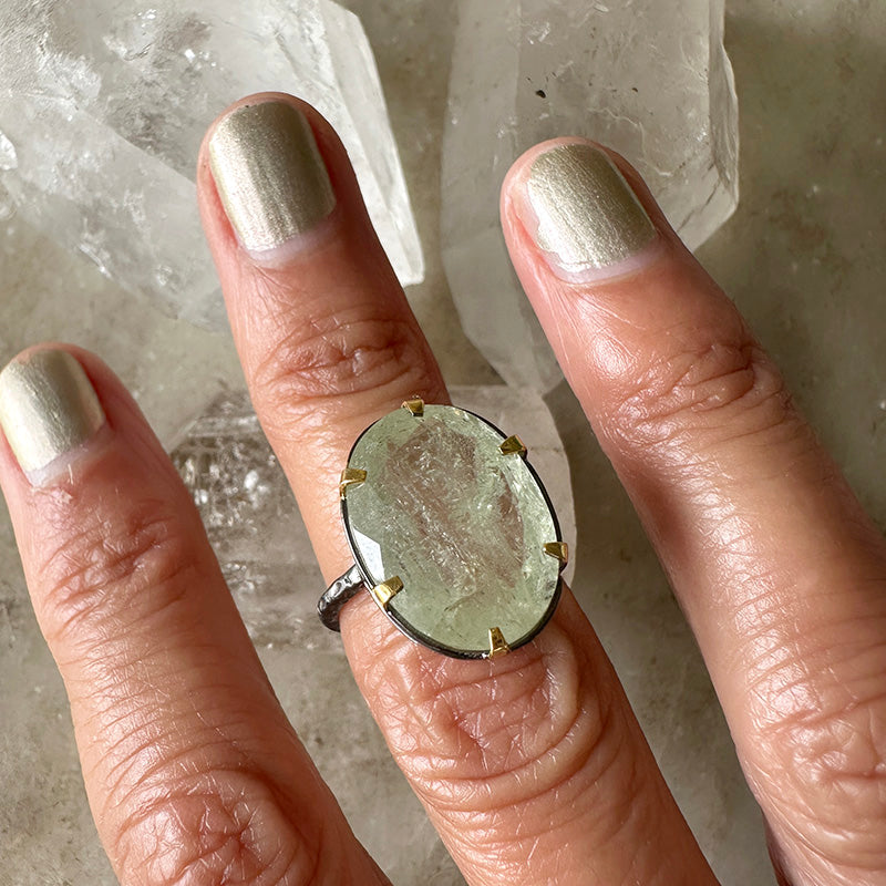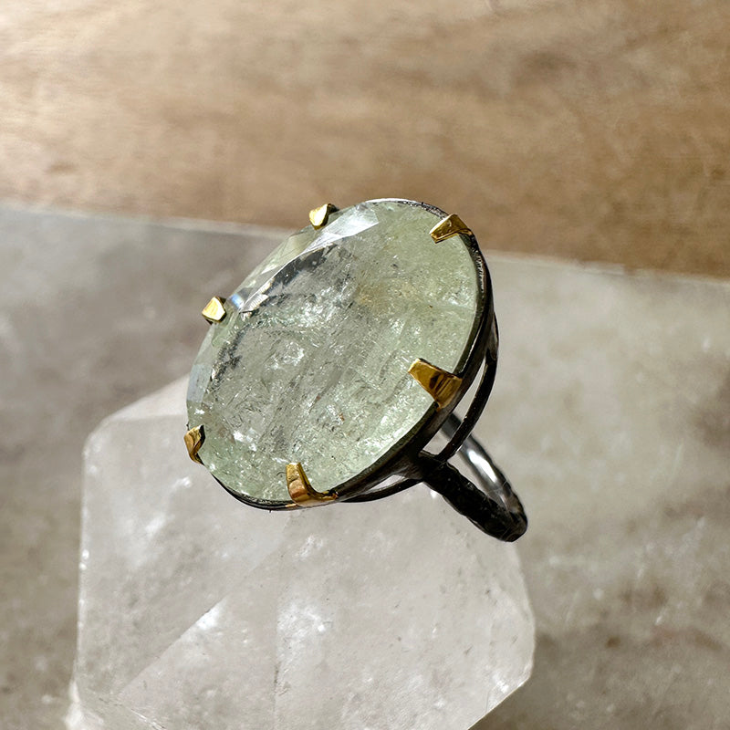 The dark color of oxidized sterling silver is a special treatment that is achieved by careful processing at our design studio. With time and with wear, the color of the oxidized metal may lighten a bit--this is a natural and organic occurrence. Please do not clean oxidized sterling silver jewelry. Attempting to clean oxidized sterling silver jewelry will remove the finish.
