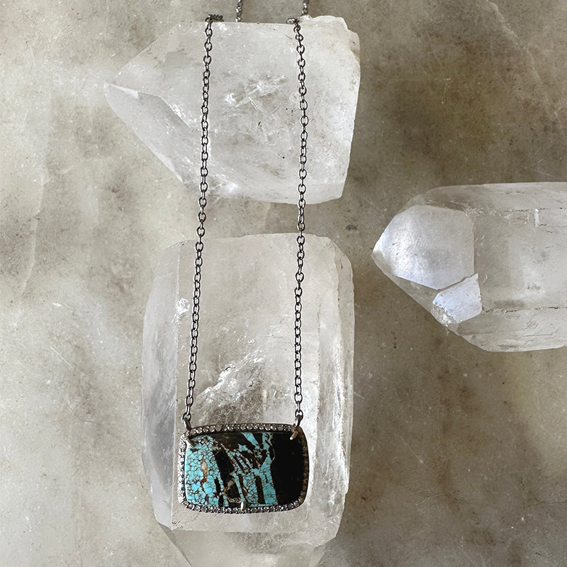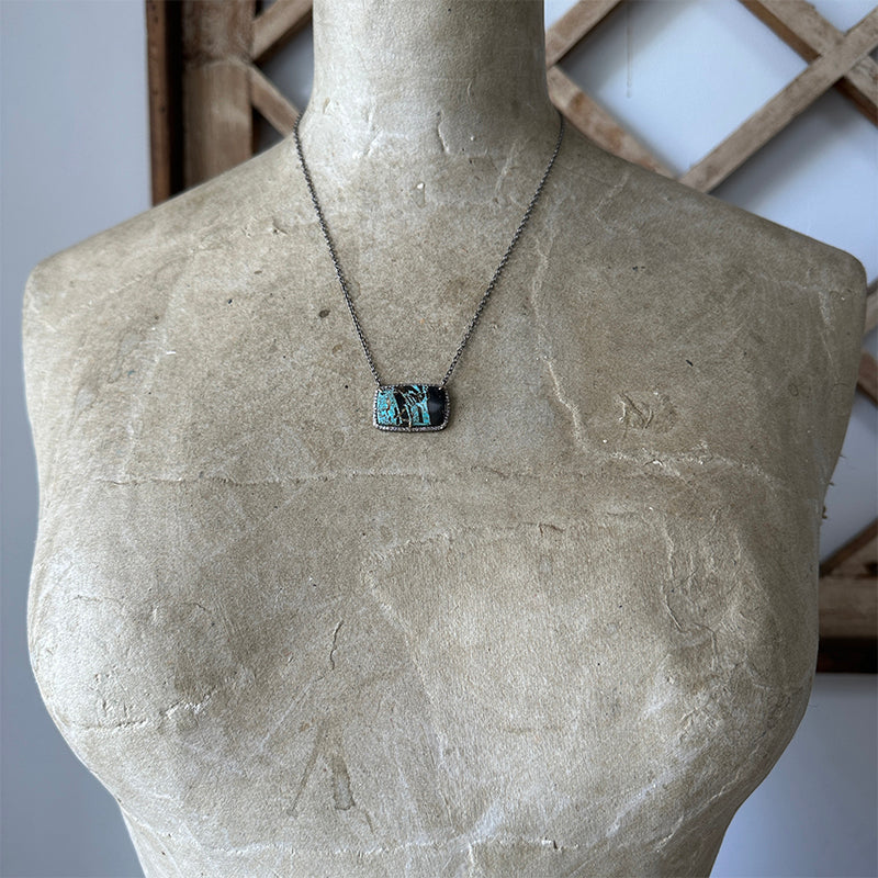 The dark color of oxidized sterling silver is a special treatment that is achieved by careful processing at our design studio. With time and with wear, the color of the oxidized metal may lighten a bit--this is a natural and organic occurrence. Please do not clean oxidized sterling silver jewelry.  Attempting to clean oxidized sterling silver jewelry will remove the finish.