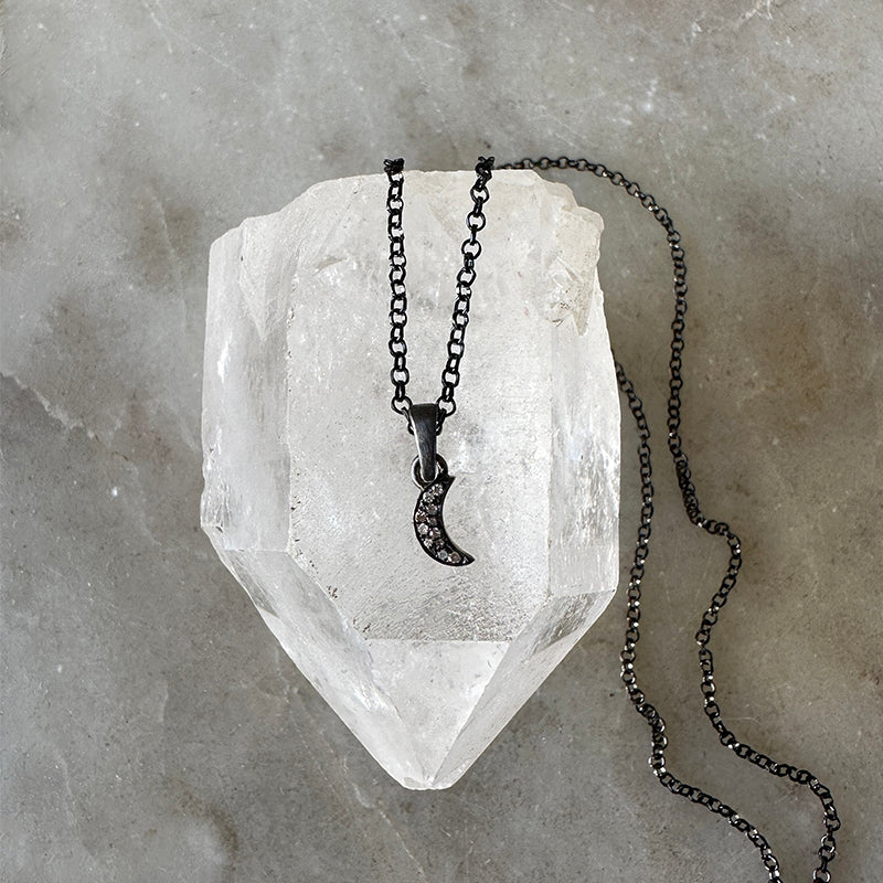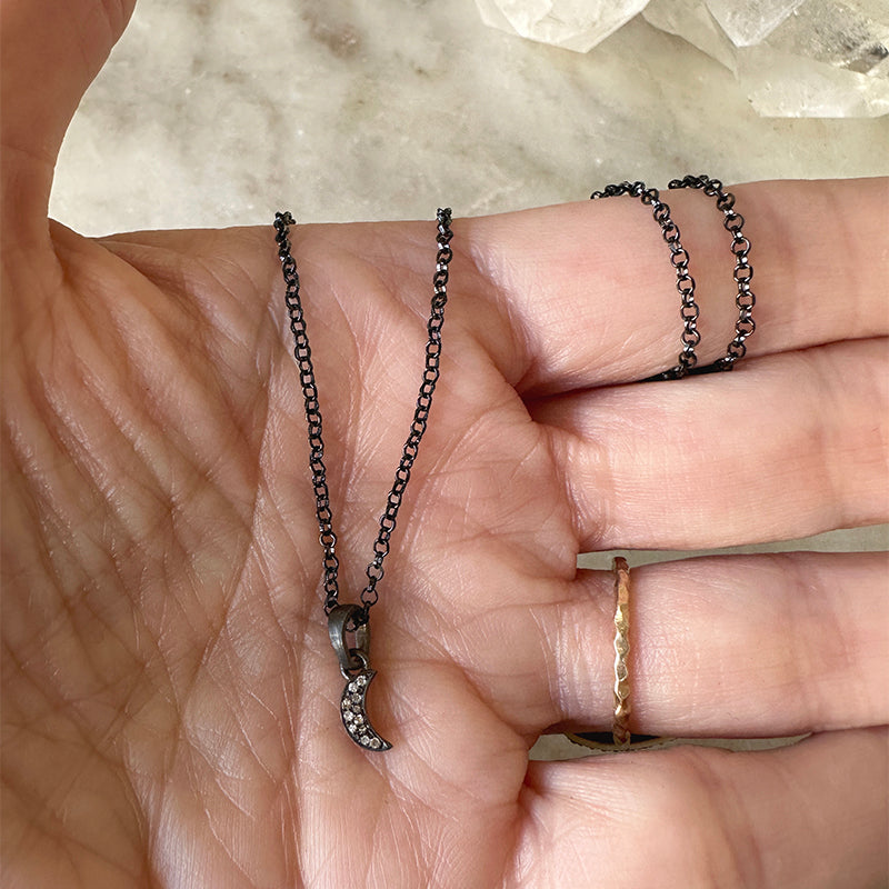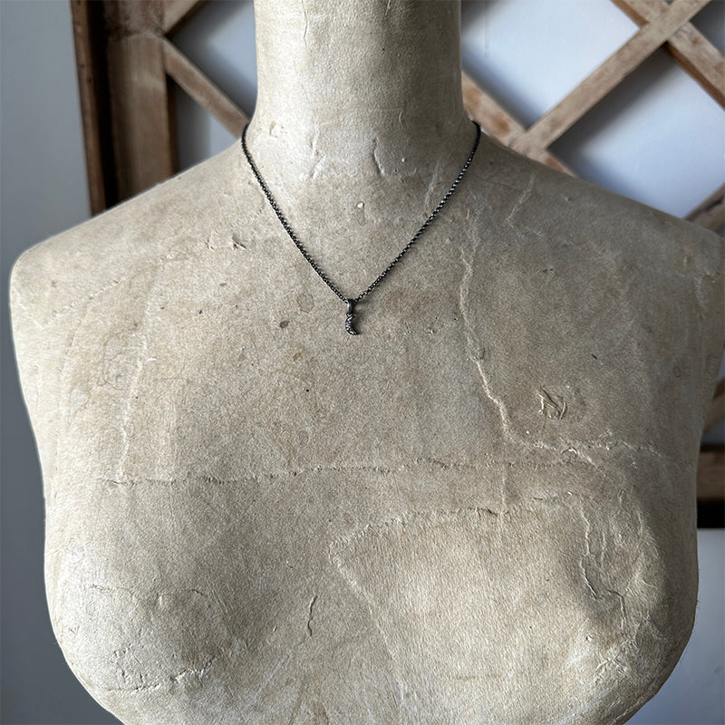 The dark color of oxidized sterling silver is a special treatment that is achieved by careful processing at our design studio. With time and with wear, the color of the oxidized metal may lighten a bit--this is a natural and organic occurrence. Please do not clean oxidized sterling silver jewelry. Attempting to clean oxidized sterling silver jewelry will remove the finish.