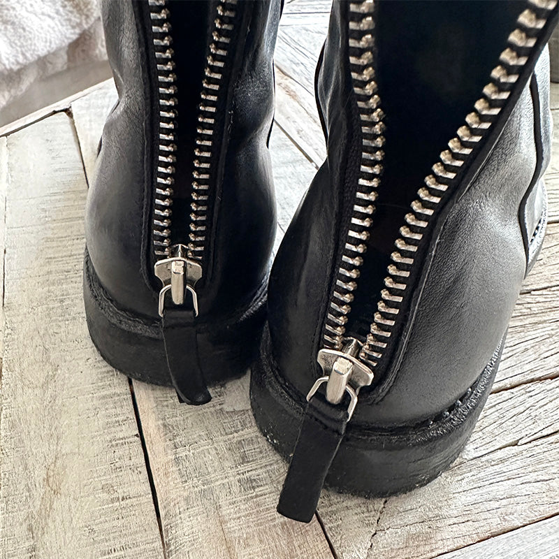 The dark color of oxidized sterling silver is a special treatment that is achieved by careful processing at our design studio. With time and with wear, the color of the oxidized metal may lighten a bit--this is a natural and organic occurrence. Please do not clean oxidized sterling silver jewelry. Attempting to clean oxidized sterling silver jewelry will remove the finish.