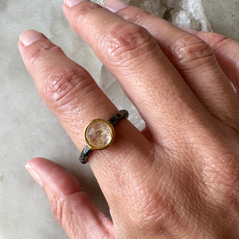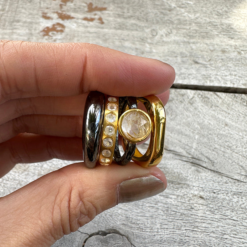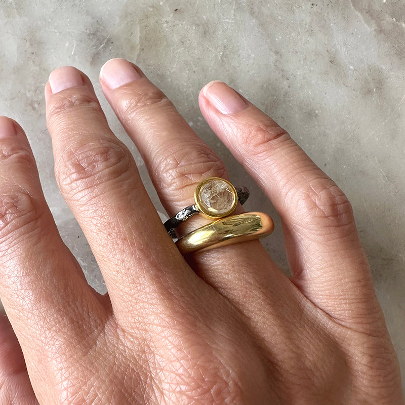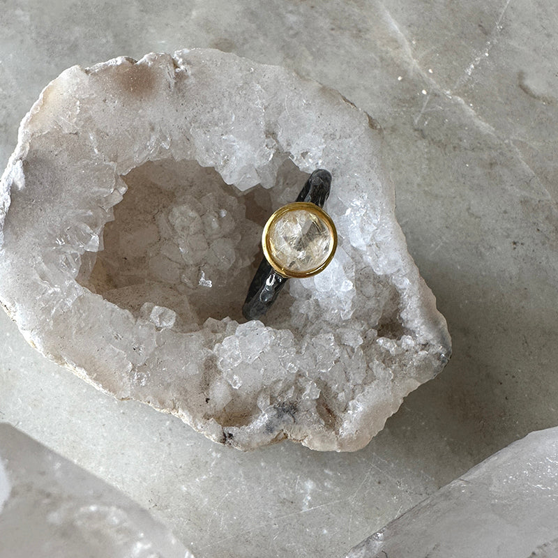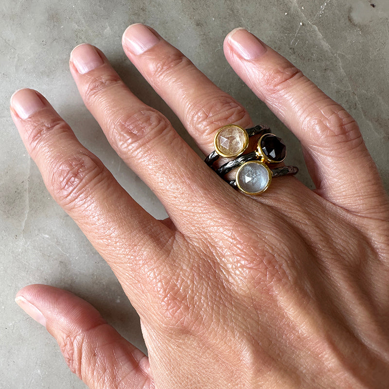 The dark color of oxidized sterling silver is a special treatment that is achieved by careful processing at our design studio. With time and with wear, the color of the oxidized metal may lighten a bit--this is a natural and organic occurrence. Please do not clean oxidized sterling silver jewelry. Attempting to clean oxidized sterling silver jewelry will remove the finish.