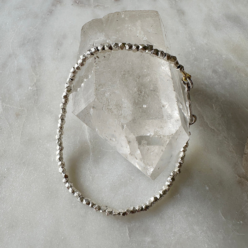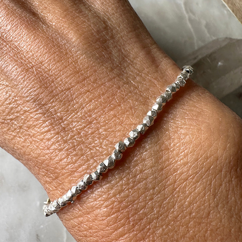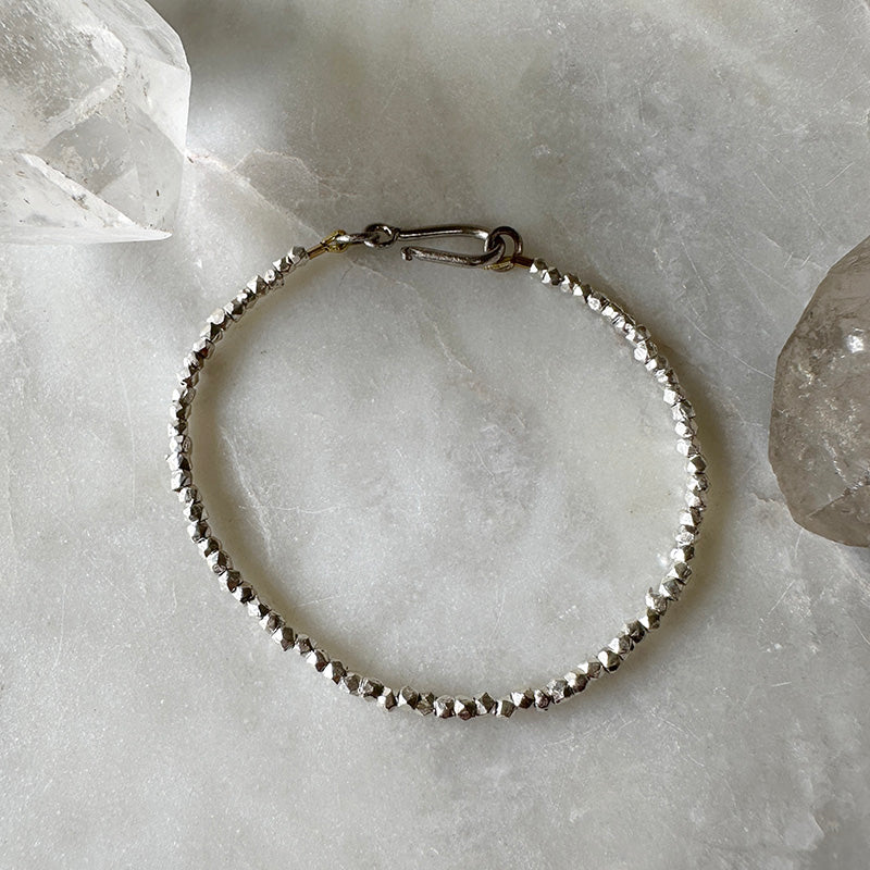 The dark color of oxidized sterling silver is a special treatment that is achieved by careful processing at our design studio. With time and with wear, the color of the oxidized metal may lighten a bit--this is a natural and organic occurrence. Please do not clean oxidized sterling silver jewelry. Attempting to clean oxidized sterling silver jewelry will remove the finish.