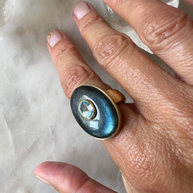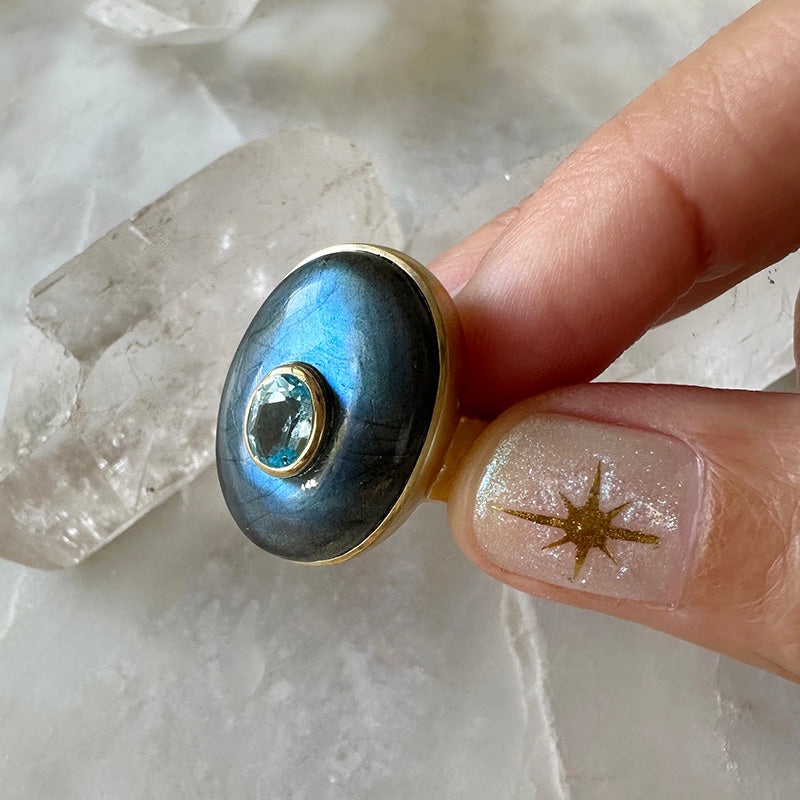 The dark color of oxidized sterling silver is a special treatment that is achieved by careful processing at our design studio. With time and with wear, the color of the oxidized metal may lighten a bit--this is a natural and organic occurrence. Please do not clean oxidized sterling silver jewelry. Attempting to clean oxidized sterling silver jewelry will remove the finish.
