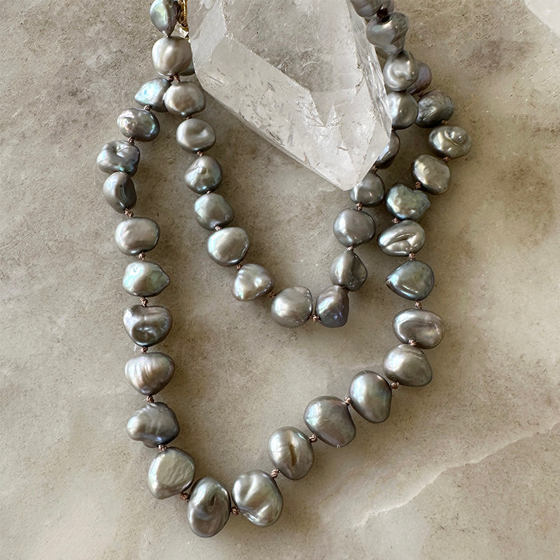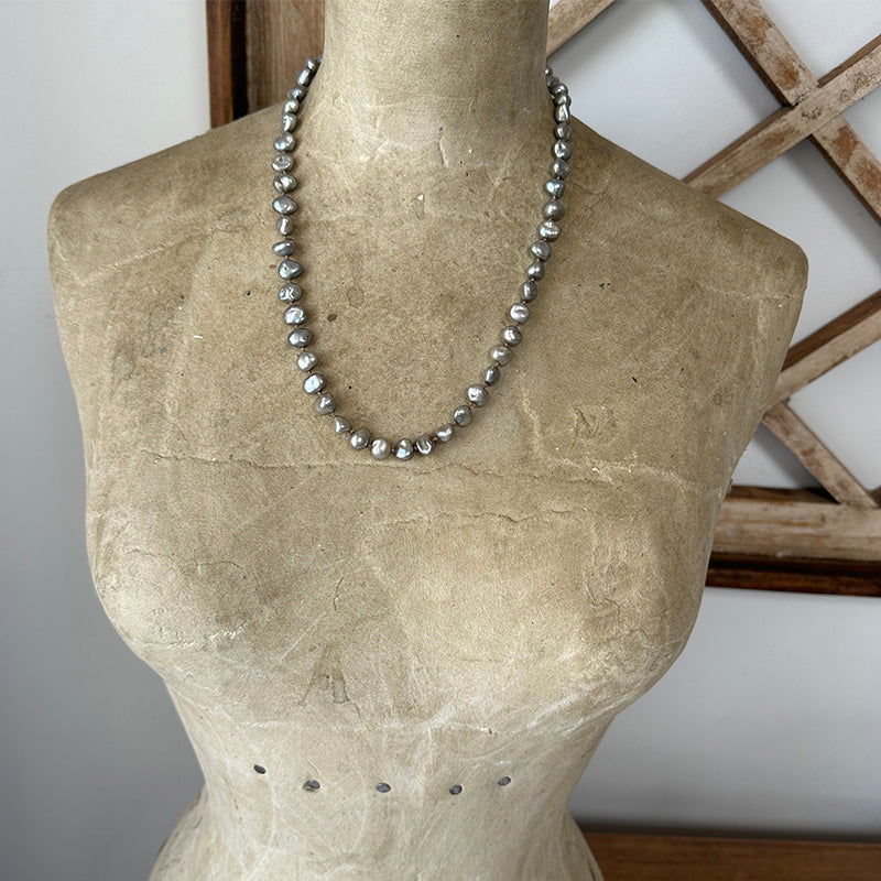 The dark color of oxidized sterling silver is a special treatment that is achieved by careful processing at our design studio. With time and with wear, the color of the oxidized metal may lighten a bit--this is a natural and organic occurrence. Please do not clean oxidized sterling silver jewelry. Attempting to clean oxidized sterling silver jewelry will remove the finish.