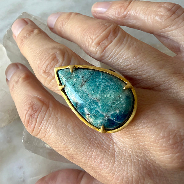 Oceanic Agate Teardrop Ring