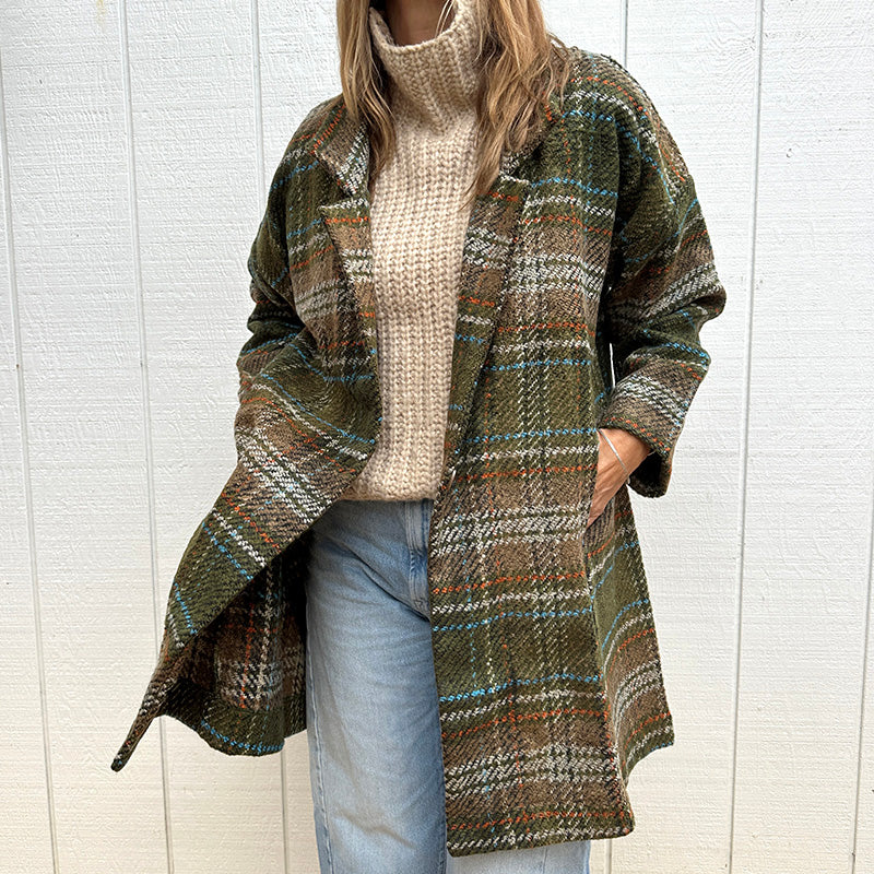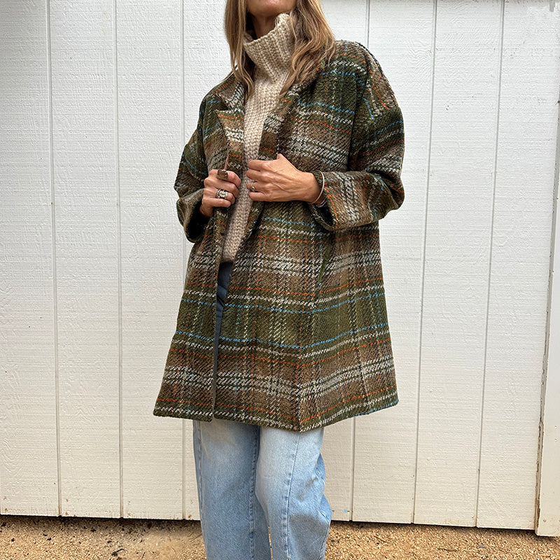 Olive Check Wool Coat